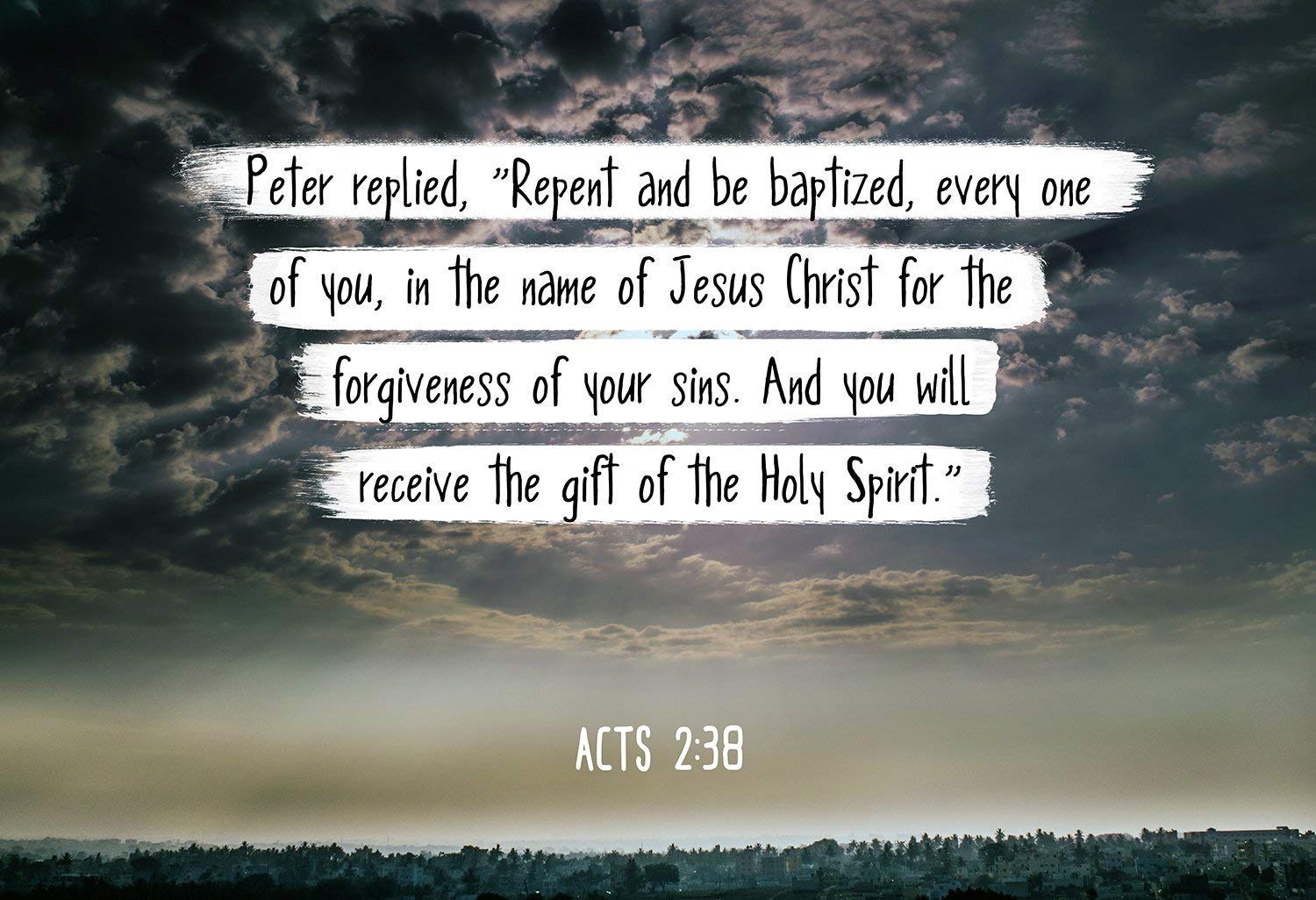 Images. Acts 2:38 peter replied, repent and be baptized, every one of you, in the name of jesus christ for the forgiveness of your sins. In the bible matthew chapter3 verse 7 john the baptist tells the pharisee he said you to must repent.answer:the call to repentance is a prevalent theme throughout.